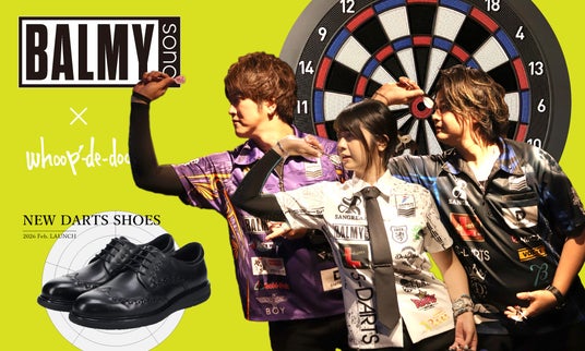 プロダーツプレイヤー発のアパレルブランド「BALMYsono.(バルミーソノピリオド)」と共同開発したコラボレーションシューズ「BALMY×WHOOP 01(バルミーフープゼロワン)」 を、2026年2月12日(木)より発売いたします。