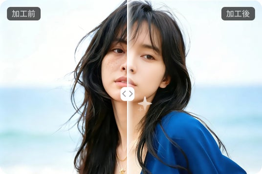 AI自動補正で肌トーンも質感も自然に整う。誰でも簡単、プロ級の仕上がり。