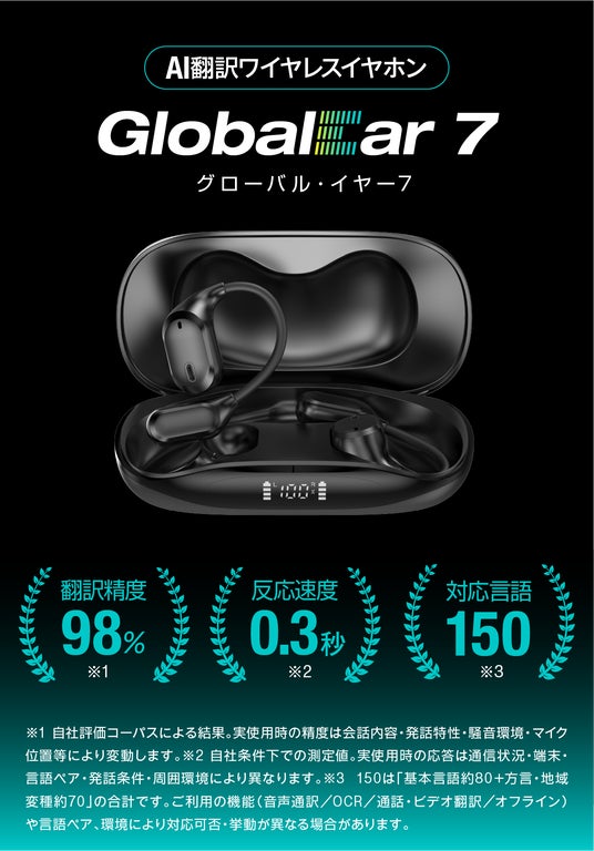 株式会社LeaguEは、耳に着けるだけで、世界150言語を最短0.3秒で自動翻訳。相手の目を見て、自然な会話を楽しめる――次世代の翻訳体験を提供するAI翻訳ワイヤレスイヤホン「GlobalEar 7(グローバル・イヤー7)」の先行予約販売を、2026年2月11日より応援購入サービス・GREENFUNDINGにて開始いたします。