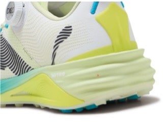 ミッドフォームにはプーマの最新テクノロジーである高反発素材NITROFOAMTMを搭載。「NITRO(ニトロ)」は、プーマのランニングカテゴリーにおいて記録更新を支えてきた厚底ランニングシューズにも採用されている革新的素材です。さらに本モデルでは、NITROクッションを前作比5mmボリュームアップ。ダウンスイング時の地面反力を最大化し、踏み込む力をスムーズに推進力へと変換。ヘッドスピードの向上と、シューズによってさらなる飛距離アップが期待できる設計です。