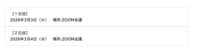 ■開催日程 (御受講の方は1日目と2日目両方をご予約下さい。)