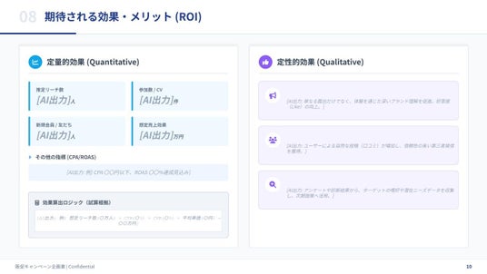 ・背景分析からROI試算まで一貫したストーリーを生成