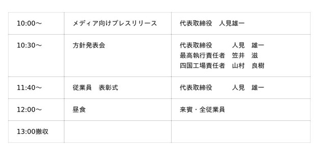 内 容:メディア向けプレスリリース・今後の事業方針発表