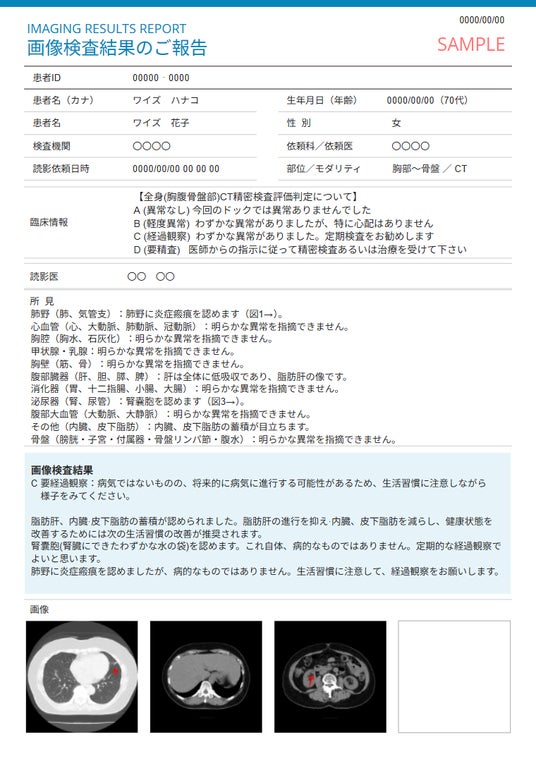 人間ドック「わかりやすい画像診断レポート」サンプル