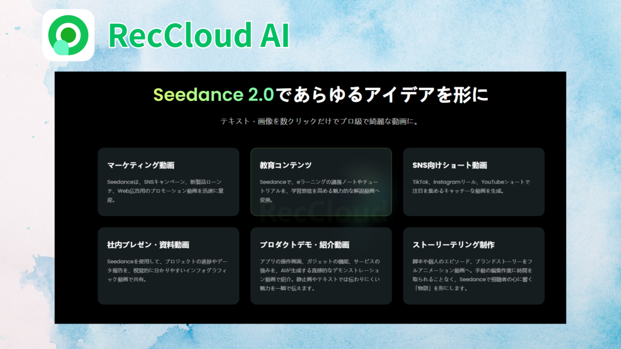 RecCloud、次世代AI動画生成モデル「Seedance 2.0」への即日対応を発表 - 世界公開初日からシームレスな利用が可能に