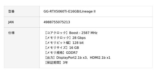 対象商品:玄人志向 グラフィックボード 「GG-RTX5060Ti-E16GB/Lineage II」※中古品は対象外です。
