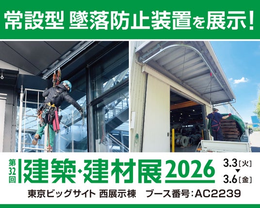 本展示会では、外壁点検やガラス清掃時など作業床の無い高所作業に最適な「セフティーレールシステム メンテナンスレール MRA型」と、トラック荷台やコンテナなど作業床のある2m以上の高所作業に最適な「アシストレール ASR型」を展示します。皆さまのご来場をお待ちしています。