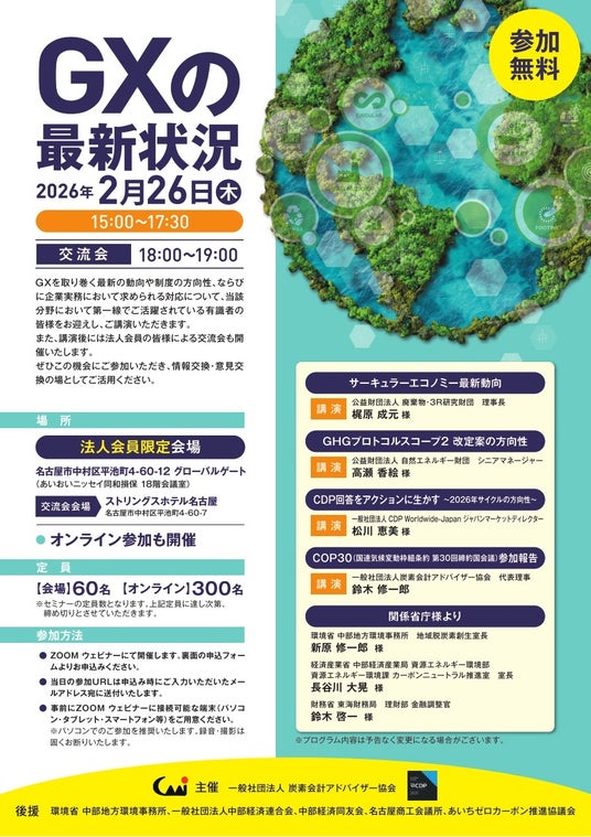 ◆ 後援:環境省 中部地方環境事務所、一般社団法人中部経済連合会、中部経済同友会、名古屋商工会議所、あいちゼロカーボン推進協議会