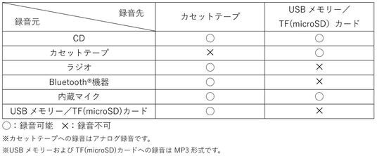 *1:録音・再生できる組み合わせには制約があります。詳細は上記の「録音機能一覧」の表をご覧ください。