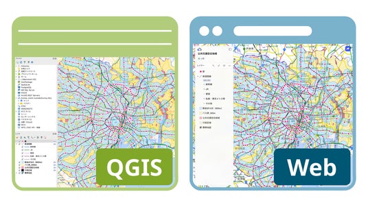 地域課題を明らかにする地図も簡単に共有可能です。作成者は慣れたQGISで速やかに、閲覧者はウェブ上で直感的に、地域の理解を深めます。