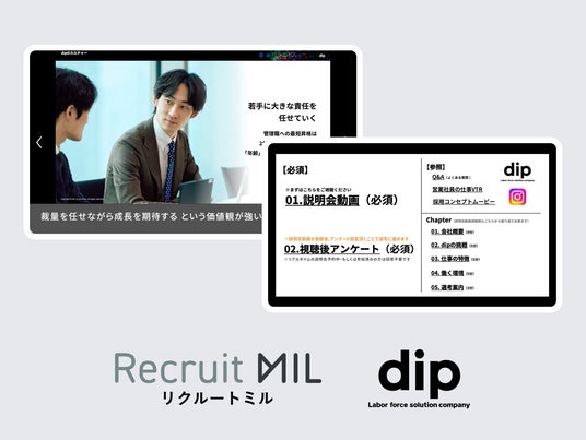 インタラクティブ採用で企業と学生の「相互理解」を支援するMIL株式会社(本社:東京都新宿区、代表取締役CEO:光岡 敦、以下「MIL」)は、ディップ株式会社(本社:東京都港区、代表取締役社長 兼 CEO:冨田 英揮、以下「ディップ社」) に説明会自動化サービス「リクルートミル」を導入いただいたことをお知らせいたします。