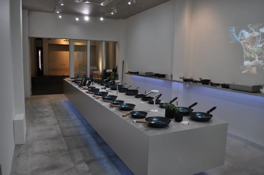 新商品の「片手鍋プレミアム」と「鉄フライパンプレミアム」に加えて、フライングソーサーが開発したオリジナル商品とセレクトした調理器具が100アイテム以上並びます。