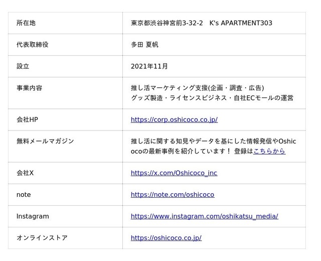 弊社は"推し活”女子をターゲットに、オタク領域でオンラインストア・メディア運営を実施しております。また、企業様向けにオタク企画プロデュースやコンサルティングを行っております。