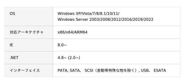 ・「A1Data Erika Edition CrystalDiskInfo」動作環境