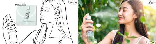 ▲コスメ事例:既存の商品写真に生成した人物と背景を合成し広告用販促ビジュアルを作成