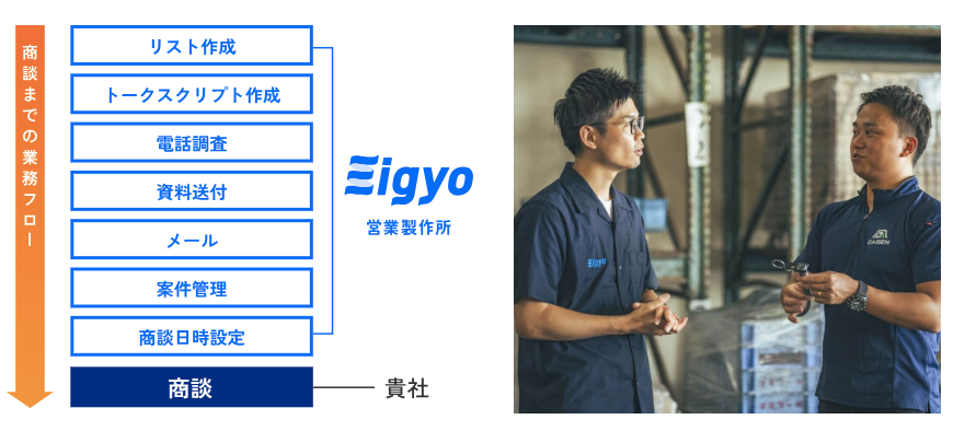 Eigyo Engineは、製造業に特化したデータベースと、技術を必要としている企業の絞り込みを駆使して、専任リサーチャーが企業を厳選し、「強みを活かせる案件」をご紹介する営業代行・マッチングサービスです。