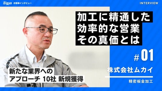 最先端のテクノロジーを活用し、製造業の業務改善を支援する営業製作所株式会社(本社:大阪府大阪市、代表取締役社長:西島本 周)は、同社が提供する営業代行/営業支援/マッチングサービス「Eigyo Engine」が、精密板金加工を手がける株式会社ムカイ(本社:長野県中野市)に導入されたことをお知らせします。