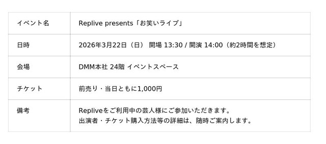 ・活動の第一弾として、2026年3月22日(日)にReplive主催のお笑いライブを開催予定です。