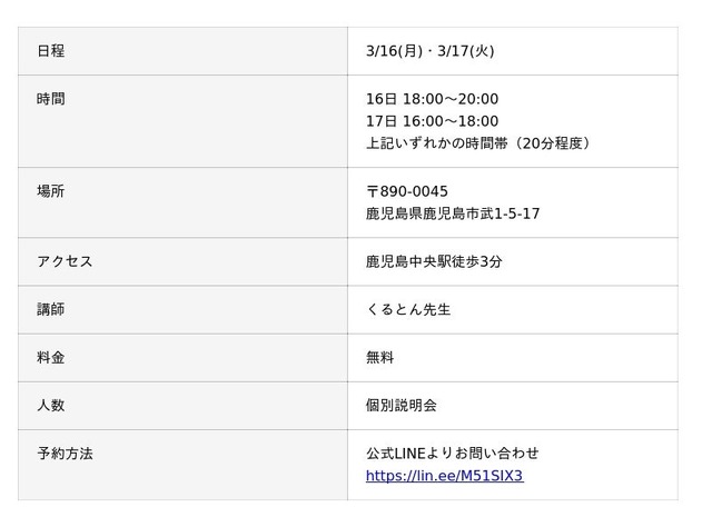 占い師養成CAMPは毎週オンラインで説明会を行っておりますが、このたび鹿児島校で直接個別説明会を行います。