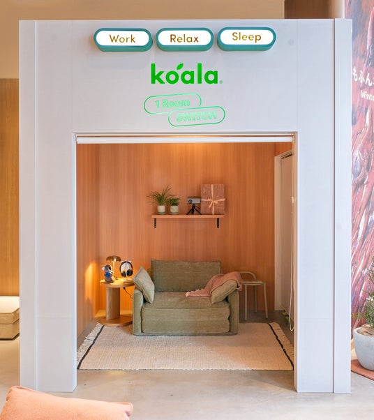 コアラ青山ストア内の体験ブースでは、「コアラソファーベッド CUSHY」を満喫できるイベントを開催中。「Work」「Relax」「Sleep」を切り替えて、1時間たっぷり自分だけの時間をお楽しみいただけます。(予約制)