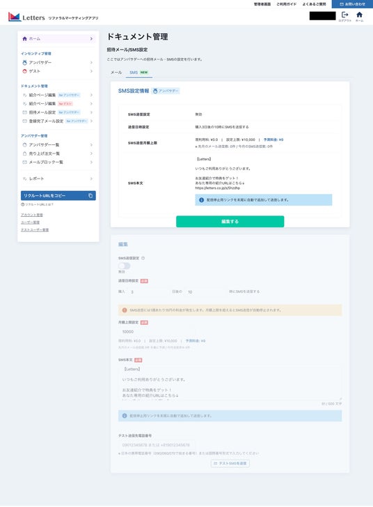 PR/マーケティング支援及びアプリ開発を行う株式会社レターズ(東京都渋谷区)は、ノーコードで紹介プログラムを導入できるアプリ「Letters(レターズ)」に、SMS(ショートメッセージサービス)送信機能を新たに追加いたしました。本機能により、従来のメール配信に加えてSMSでも既存顧客へアプローチが可能となり、メール開封率の低下という課題を解決し、より確実な顧客リーチを実現します。