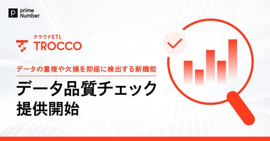 株式会社primeNumber(本社:東京都品川区、代表取締役CEO 田邊 雄樹)は、クラウドETL「TROCCO」において、新機能「データ品質チェック」の提供を2026年2月25日に開始しました。これにより「TROCCO」のデータマート機能(※)でデータを分析用に加工した際に、重複や欠損を即座に検出することが可能になります。primeNumberは本機能を通じて、専門知識がなくても誰でも簡単にデータ品質を管理し、信頼できるデータに基づく意思決定やAI活用を実現できるよう支援します。