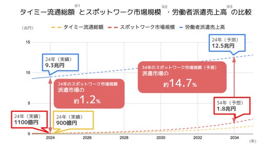 タイミー流通総額・スポットワーク市場規模・派遣市場規模を比較!