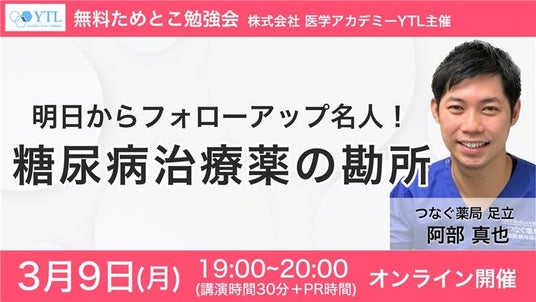 株式会社医学アカデミーYTL(東京都千代田区、事業部長 平島光博)は、2026年3月9日(月)、薬剤師に向けた無料ウェビナー「ためとこ勉強会」を開催いたします。