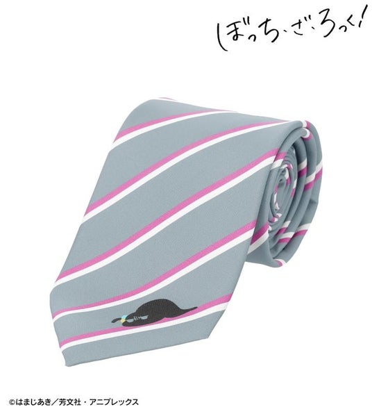 後藤ひとりをイメージした、ピンクとホワイトのカラーのストライプに、ワンポイントでツチノコぼっちのイラストをデザインし、ネクタイに仕上げました。