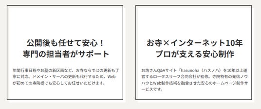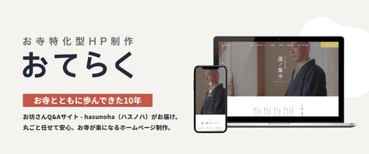 お坊さんに悩み相談できるサイト - hasunoha(ハスノハ)を運営する、ロータスリーフ合同会社(代表:堀下剛司)は、寺院特化型ホームページ制作サービス 『おてらく』 の提供を開始しました。AIが言葉を生成できる時代だからこそ、住職自身の言葉をしっかり文章とデザインに落とし込むことが重要であると考えた取り組みです。