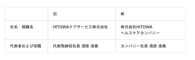 HITOWAケアサービス株式会社は、2026年3月1日付で株式会社HITOWAと統合し、「ヘルスケアカンパニー」にて介護事業を運営します。