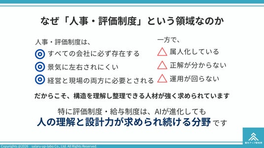 今回の説明会は、単なる求人案内にとどまらず、「評価制度」という専門領域に対する理解促進と、新たなキャリア選択肢の提示につながる機会となりました。