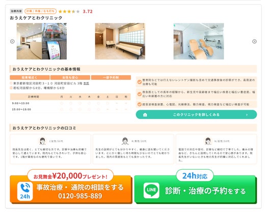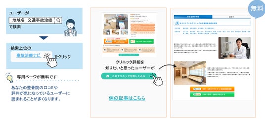 1.SEOによる圧倒的な集客力: 事故治療に特化したキーワードで上位表示を実現。広告費をかけずに自社メディアへユーザーを誘導しているため、加盟院への安価な送客が可能です。