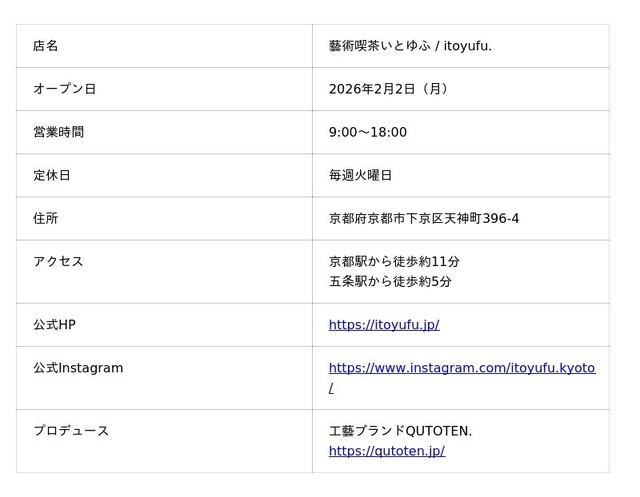 株式会社Entame(本社:東京都渋谷区 代表取締役:松崎 十士皇)は、2026年2月2日(月)、京都市下京区にて「藝術喫茶いとゆふ」をオープンいたしました。