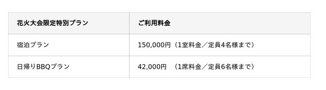 本プランでは、客室やBBQ席から花火をご覧いただけるロケーションに加え、限定特典としてアルコール・ソフトドリンクの飲み放題やお菓子の盛り合わせをご用意。さらにオプションでこだわりのBBQメニューも選択可能なため、手ぶらで気軽に花火を楽しめる内容となっています