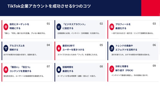 ここでは、企業がTikTokを成功させるために押さえるべき9つのポイントを解説します。