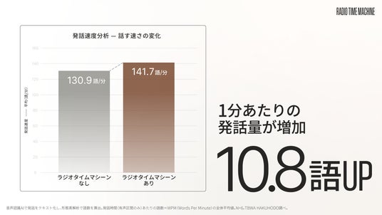 3. 発話速度の分析を行ったところ、1分あたりの発話量が10.8語増加するという結果が得られました。ラジオを聴くことで様々な記憶が呼び起こされ、それを相手に伝える意欲が高まったのではないかと推察しています。