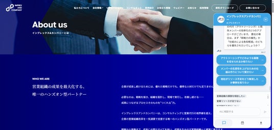 今回のリニューアルでは、営業支援企業としての知見を活かし、AIチャットボットを導入することで、サイト訪問者に対して「オンライン上の営業担当」のような対話型の情報提供体験を提供します。