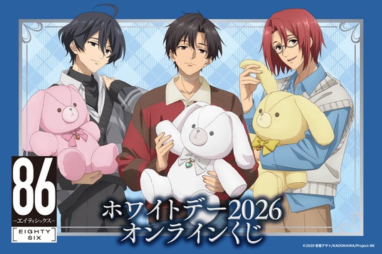 株式会社KADOKAWA(本社:東京都千代田区、取締役 代表執行役社長 CEO:夏野 剛、以下 KADOKAWA)は、運営するオンラインくじサービス「くじ引き堂」において、TVアニメ『86―エイティシックス―』の豪華賞品が手に入る<TVアニメ 「86―エイティシックス―」ホワイトデー2026 オンラインくじ>を、2026年3月12日(木)12時より販売します。