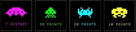 キャラクターには、UFO、イカ、カニ、タコがいて、それぞれ撃った時のポイントが異なります。詳しくはスペースインベーダー公式サイトをご覧ください。