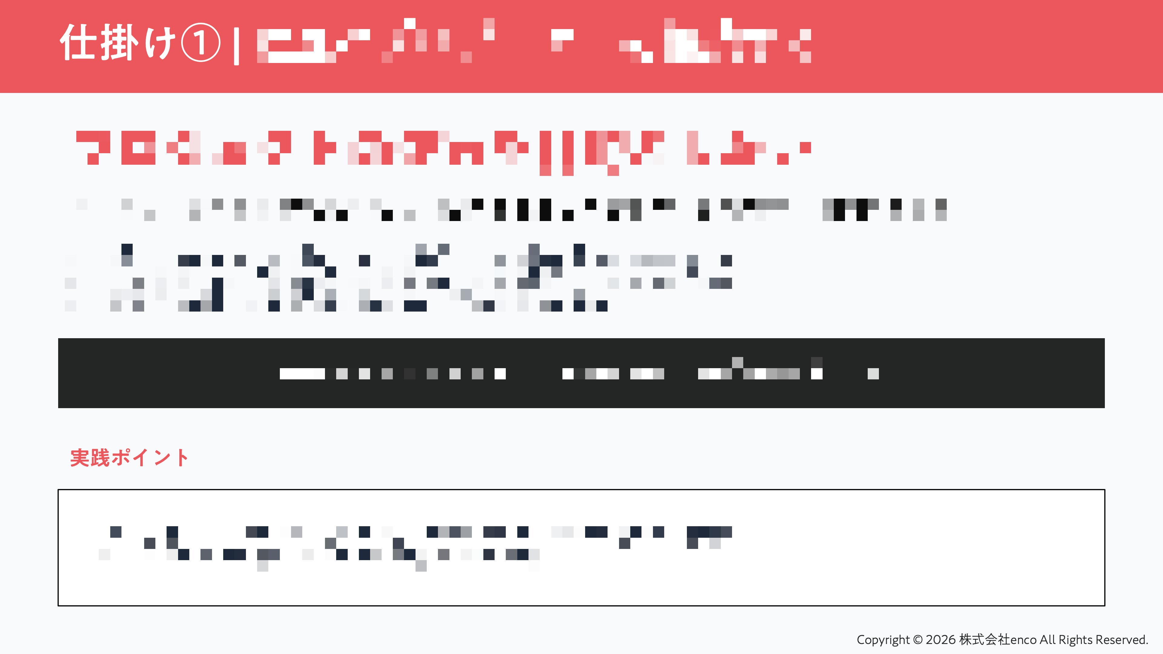 分岐点の分析にとどまらず、「では、どうすれば自走する組織に転換できるのか」という実践的な問いにも答えています。encoが多くの企業への伴走支援の中で得た知見をもとに、自走を生み出すための3つの実践的な仕掛けを具体的に紹介しています。「仕掛け」というのは、掛け声や意識改革を促すものではなく、実際にプロジェクトの場に組み込むことができる具体的な設計・仕組みです。