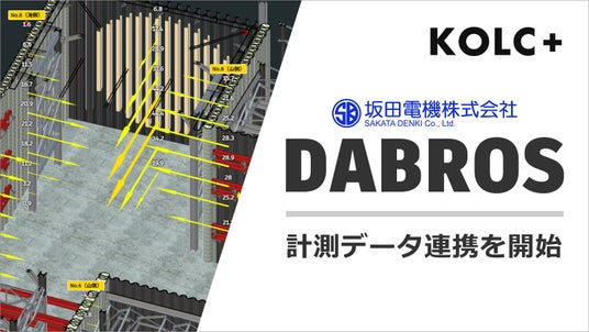 本連携は、清水建設株式会社(以下、清水建設)が施工を担当する「相模鉄道本線 鶴ヶ峰駅付近連続立体交差工事 第1工区」で坂田電機の計測機器とKOLC+が導入されていたことから、工事長の佐竹省胤氏の仲介により、2024年9月から協議を進めてまいりました。2025年にKOLC+の「3Dグラフ」が外部クラウドの計測データをAPI連携により自動取得できるようになったことに伴い、坂田電機の計測クラウド「DABROS(ダブロス)」にてAPI連携を早期に実装したことで、本連携が実現しました。