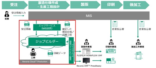 富士フイルムビジネスイノベーション株式会社(本社:東京都港区、代表取締役社長・CEO:浜 直樹)は、印刷会社の印刷生産管理業務において、製造仕様作成や生産工程設計をAIで自動化するクラウドサービス「Revoria Cloud(TM) Production(レヴォリア クラウド プロダクション)」を3月11日より提供開始します。本サービスは、印刷会社の生産管理部門が担う、受注情報の確認や、印刷時の用紙サイズ指定をはじめとした製造仕様の作成、生産工程の設計といった高度で複雑な業務をAIが支援し、取り込んだ受注情報から最適な製造仕様と生産工程を自動で作成して提示します。これにより、従来は熟練の作業者が行っていた煩雑な確認作業や仕様検討が大幅に減り、業務負荷を大きく低減します。さらに、本サービスは当社の製版ワークフローシステムとオンラインで連携することで製版ジョブチケット(※1)の自動作成が可能となり、現場全体の作業効率を大幅に向上させます。