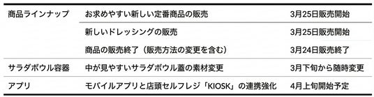 サラダをより日常的に楽しんでもらうため、3月下旬より全店舗で、サラダボウルの蓋を紙素材から透明なプラスチック素材へ変更し、テイクアウト時の体験向上に取り組みます。