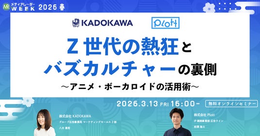 IPコンテンツの企画・制作・ビジネス展開を行う株式会社Plott(本社:東京都千代田区、代表取締役:奥野翔太、以下「Plott」)は、2025年3月13日(金)に開催する「第21回メディアレーダーWEEK 2026 春」(主催:株式会社アイズ)のオンラインセミナーに、当社IP展開事業部 広告ライン・相澤海斗が登壇することをお知らせいたします。