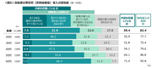 「あてはまる違反行為が何かすべて知っている」は7.6%にとどまる。20~40代は「制度の導入自体を知らなかった」が2割台。<図5>
