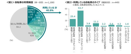 普段、自転車を「利用している」人は40.8%で、「ほぼ毎日利用している」は12.0%。<図1>