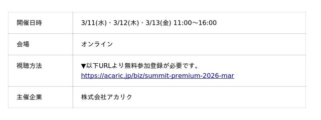 【開催中】Acaric Summit Premium 人事・採用EXPO|3/11(水)・3/12(木)・3/13(金)開催