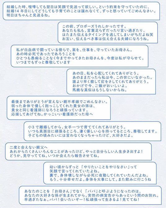 ここに集まった手紙が、あなたの大切な人へ言葉を届けるひとつのきっかけとなれば幸いです」