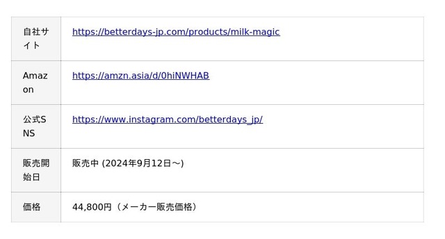 ※*BetterDays調べ 日本国内における「自動ミルクメーカー」として2026年3月現在